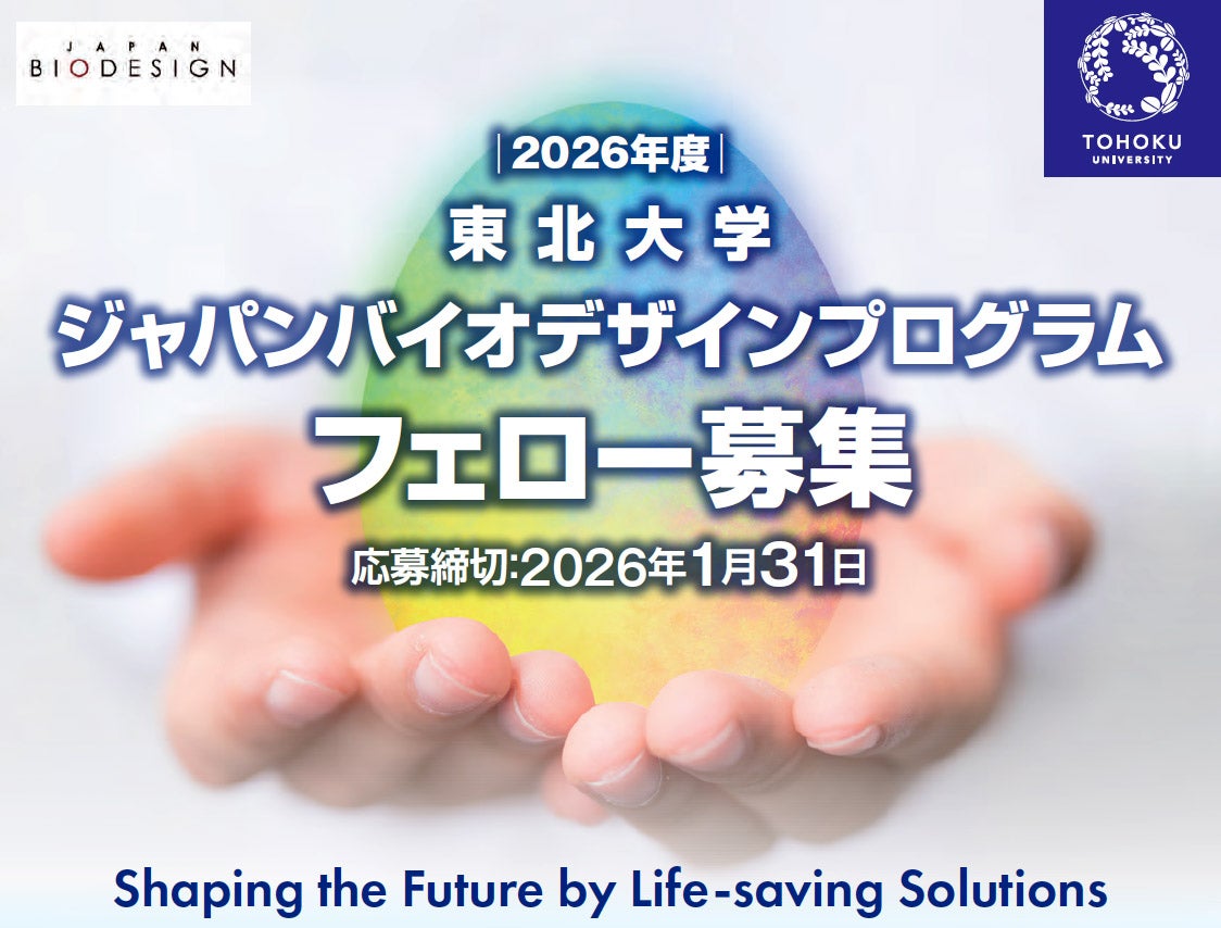 東北大学病院臨床研究推進センター バイオデザイン部門では、医療機器開発を推進するための人材育成プログラム、ジャパンバイオデザインフェローシッププログラムを2026年5月より開講します。