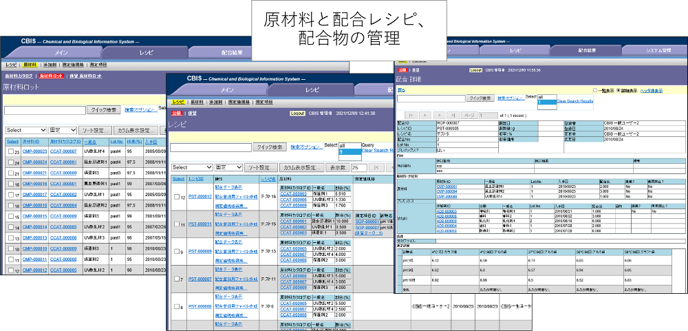材料開発における原料や添加剤のカタログ情報と在庫情報、その配合条件(レシピ)、製品に対する測定データや画像データ、機能や安全性など製品の規格などの様々な種類のデータを連携して有効活用する事例をご紹介いたします。